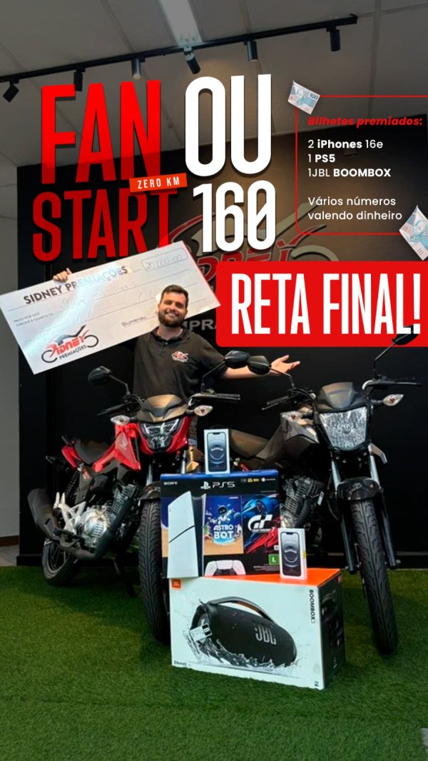 Concorra a uma Fan 160 ou Start 160 0km — o ganhador escolhe qual das duas levar!
